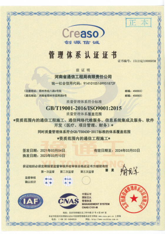 通信施工領(lǐng)域信用企業(yè)AAA級
